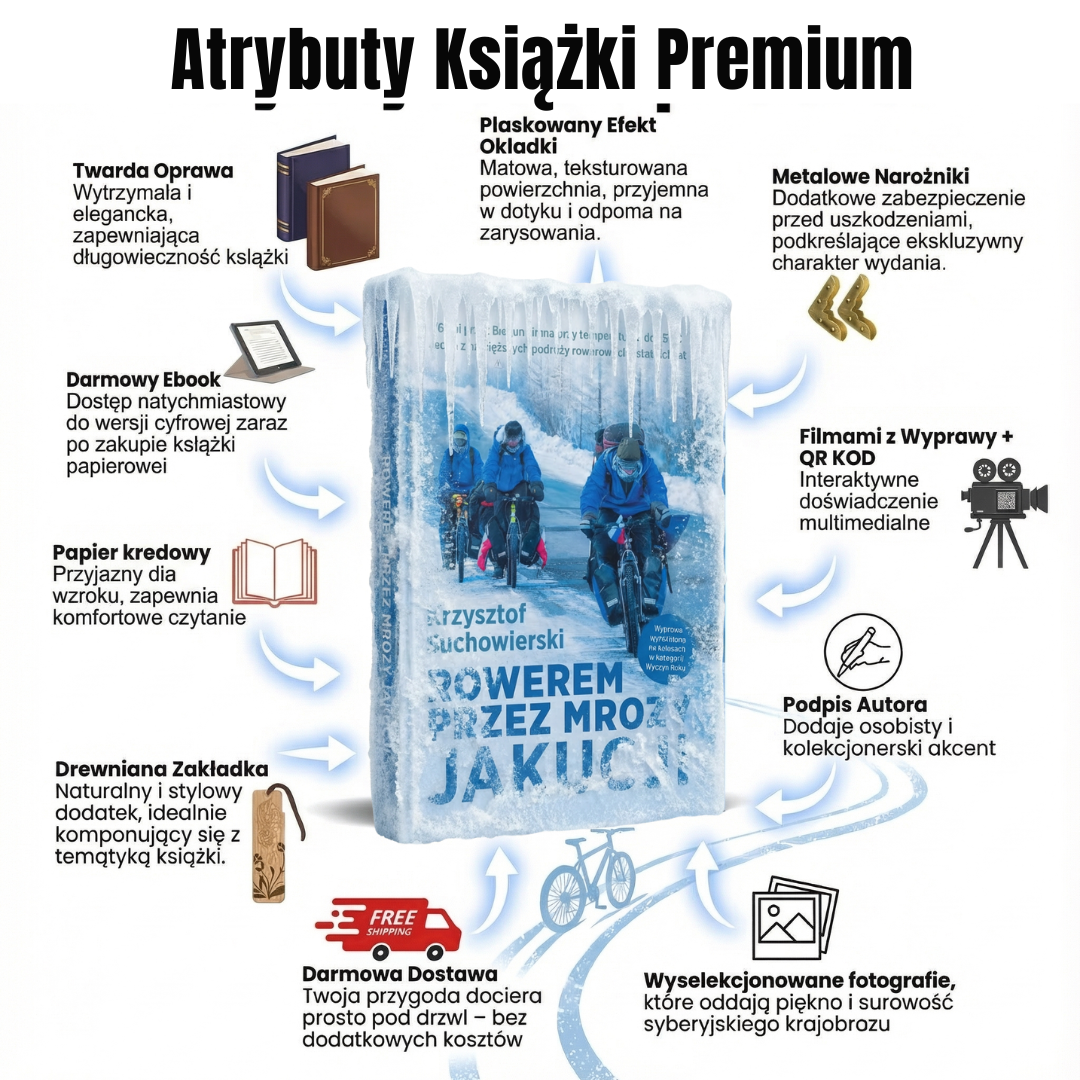 To nie wymyślona historia – to autentyczna przygoda, która naprawdę się wydarzyła w 2014 roku. Poczujesz mróz, który „gryzie aż do kości”, a jednocześnie zrozumiesz, jak „charakter hartuje się w mrozie”. Poznasz metody przetrwania w -50 stopniach Celsjusza – spisane przez kogoś, kto naprawdę tego doświadczył. Wyruszysz w historyczną podróż „Drogami Pamięci”, poznając losy Polaków zesłanych na Syberię, i zobaczysz, jak wyglądała „Droga na Kościach” – najdłuższy cmentarz świata.